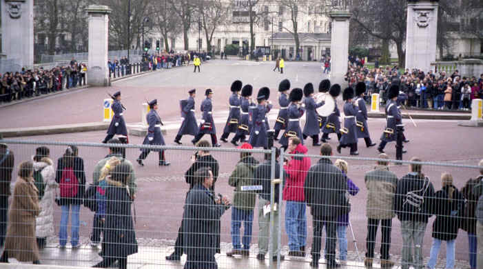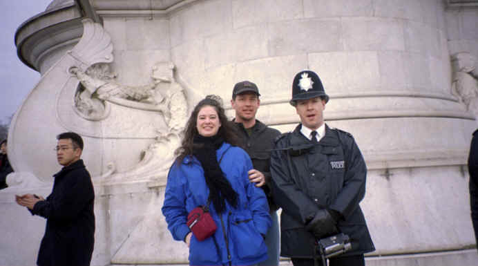 Our hotel was right around the corner from Buckingham Palace and the Changing of the Guard was the next day, so that was the first thing we did. We saw it last the last time we were here; however, they did a lot more this time. Not to mention Katie is a Royalty nut! In addition to the regular ceremony, a band marched in with the guards and played inside the gates of the Palace for about a half an hour. Even the Bobbies came out to see the procession! |