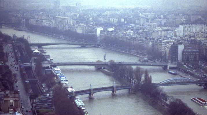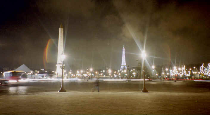 On our first day out, we decided to take a walk up to the Eiffel Tower and scope out a place to watch the fireworks later that night. As we walked around, we thought we had found a perfect place to watch the fireworks right in front of the Tracadero which was just across the river and where all the television cameras were set up. We would find out later that evening that wouldn't be a very good plan! We decided to just hang out until it was time to find our spot for the fireworks. About 8:00 we decided to venture out. We ate and then started walking toward the Eiffel Tower. The closer we got to where we thought we wanted to be, the worse it got. We almost got to the Tracadero (which is just across the Seine), when it really got bad! People were pushing and shoving and these groups of kids decided they liked stirring it up even more. They would run behind each other and plow through the crowd pushing and shoving people. We decided this was not the place for us and left as quickly as we could to find another spot. It was so crowded, you just couldn't move! We had to literally fight our way out. We eventually made it out of the zoo and found a spot on one of the bridges over the Seine. We had a great view! Now it was time to wait. I figure there had to be at least 1.5 million people there! It was wall-to-wall people for miles! Everywhere you looked it was just masses of people waiting for the big event. Finally...10, 9, 8, 7, 6, 5, 4, 3, 2, 1,...BONNE ANEE!!! The fireworks were spectacular! They started at the bottom of the Eiffel Tower and gradually worked their way to the top. Then, another huge display of fireworks behind the Tower. There were cheers everywhere. Then the Eiffel Tower began to sparkle from top to bottom. It would stay like that for the remainder of our trip. This was a once in a lifetime experience! Immediately after the fireworks, we proceeded to the Champs Elysees where the celebration continued. All through the middle of the street were these really odd Ferris wheels. Each had a different and unusual theme. One had the modern wonders of the world; another had musicians hanging off the wheel playing unusual electronic instruments; one was operated with pedal power; while another was just electronic lights and TV monitors. Again, this place was a nightmare. As you walked down the main road, others would pour in from the side streets creating a kind-of swirling action with the crowd. The Ferris wheels went on for about an hour and a half and we didn't even make it to the end in that time. It took us about 10 minutes earlier in the day. Unbelievable! |