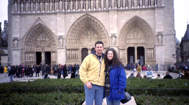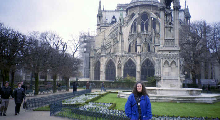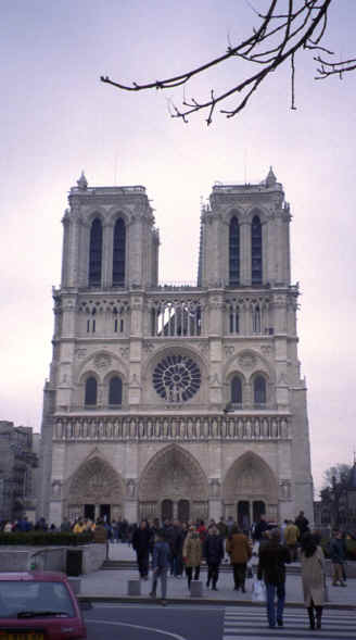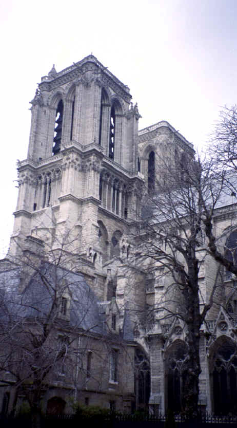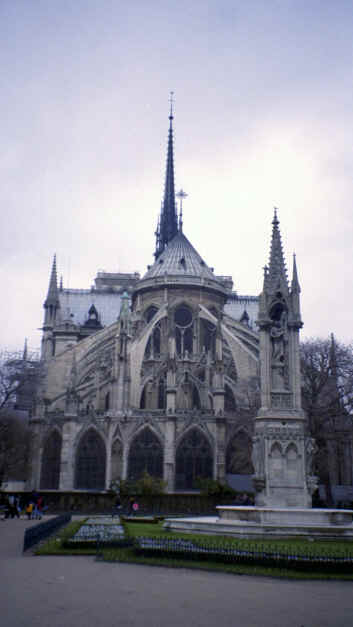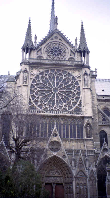 This was the day after New Years, so we were pretty tired; however, the prospect of seeing Notre Dame kept us going. We took the Metro to Ile de la Cite and when we exited the subway we came out onto a flower market all along the street, so we had a great first impression of the island. About 2 blocks away was Notre Dame. When we arrived, I don't think we could have imagined the true gothic proportions of the cathedral. There were hundreds of gargoyles everywhere around the church protecting it from evil spirits with tall spirals of steeples everywhere. It was built, originally, in the 12th century. Napoleon was crowned emperor here. Unbelievably, it was actually scheduled to be torn down; however, Hugo's "Hunchback of Notre Dame" revived interest in the cathedral. |