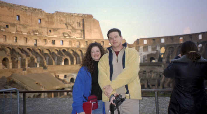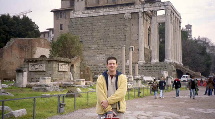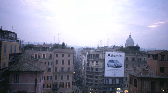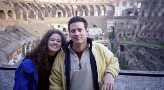 Well, where do I start? We really enjoyed Rome. It was one of our favorite stops. We paid a cabbie 200 francs (about $8.50) to take us to the Paris airport early on January 9th. What a deal! It's about a 45 minute ride out to the airport and he got us there in record time. We even managed to get to the airport early and catch a flight that left at 9;30 instead of 11:00 ( I told you we were lucky with the transportation!)! We arrived at the airport in Rome and spent awhile trying to figure out the trains. All the guide books said you had to take a train to another stop in Rome and then take the subway downtown to get to the hotel. As it turned out, there is now a direct train that goes straight into Rome. The train ride lasted about 45 minutes and when we finally arrived at the main train station (The Termini) in Rome, we stood in line to catch a cab to the hotel and were immediately met by the infamous gypsies! They were younger girls in their 20's and would walk up to you holding a piece of cardboard over their hands. They would try to distract you by getting right up next to you and would push and pull at you. They were really quick! We managed to get them off of us. We were prepared anyway and had locked everything up and gotten everything out of our pockets (including Katie's wedding ring!). Two girls standing in line behind us were next. The gypsies moved over to them and the girls panicked. Finally, an Italian gentleman chased them off. When the girls checked their backpacks, the gypsies had managed to open a few of the outside pockets in just the few seconds they were there. I don't think they lost anything, so we were all lucky. An interesting start to our trip to Rome. I guess it was good to get that out of the way early, since I knew we would see them again. You see all the news (60 Minutes, etc.) about these gypsies and you don't realize just how real it is. |