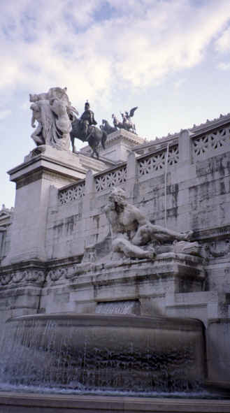 This was kind of the gateway to the Colosseum, Palantine Hill and the Forum. We had been by here several times and didn't realize the Ruins were literally right in front of us. The building you see below is dedicated to Rome's unknown soldiers. The ruins are down in the valley behind it. As we wandered around the square toward the building, we saw another great fountain fed by the aqueduct as well as part of the ancient Roman Servian wall. |