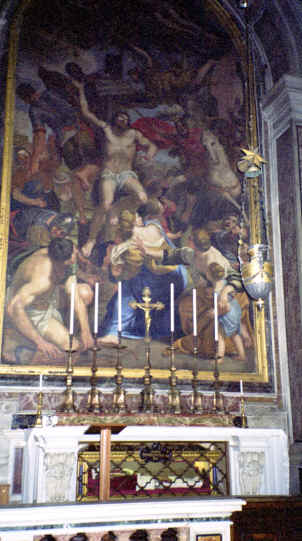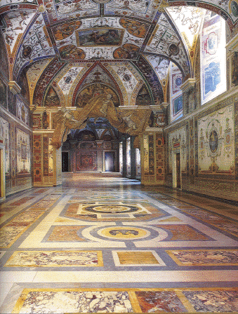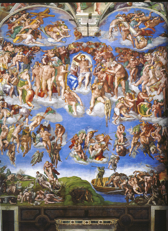We continued through the papal apartments which were more of just room after room of wall murals and frescoes. It was very crowded in these rooms as they meandered through like a maze or puzzle. We took mostly videos in here since they were poorly lit and hard to get a good still pictures. All of a sudden, you went through a hallway and you were at the Sistine Chapel. They had just finished years of renovation and restoration and had removed all of the scaffolding, etc. that was there for all that time, so we got to see it finally finished. Unfortunately, they don't allow cameras; however, I was a bad boy and got some of it on videotape. Here are a few pictures from a book we bought here. |