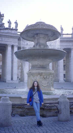 Wow! We already seen some great stuff today. What was left? Well, we left the Sistine Chapel and that led us right into St. Peter's Square (actually an ellipse!). It was huge! Can you imagine hundreds of thousands of people jammed in here to hear the Pope speak? There were two beautiful fountains on each side (one an original from the 17th century, one a copy) with, you guessed it, another Egyptian obelisk in the center! The square was surrounded by two long palades on each side that were used to intimidate visitors to the Vatican in earlier days as they would have to parade through these huge columns to meet the Papal hierarchy. |