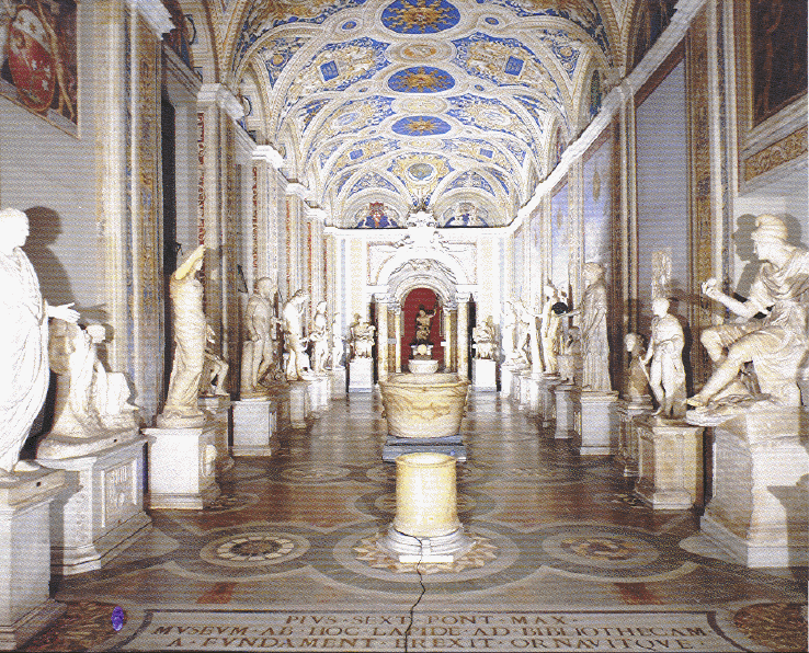 Of all the museums we had seen on our trip (and otherwise, I guess), the Vatican museum had to be the most impressive. Just the sheer number of antiquities was amazing. We started our morning by catching a cab to Vatican City. You entered through a "side door" to begin the tour of the "country". It all starts with a tour of the Vatican museum followed by the Papal Apartments which then lead you to the Sistine Chapel and out onto St. Peter's Square and the Basilica. The museum included unbelievable statues, paintings, tapestries, wall murals, frescoes (including one of Christ from the 9th century, the earliest known), mummies, antiquities including a chariot as well as ancient maps, books and writings from around the world and, of course, the papal scepters and crowns. We were in a hurry to get through because the papal apartments and the Sistine Chapel were only open for a few more hours, so most of what we took here was on video. |
